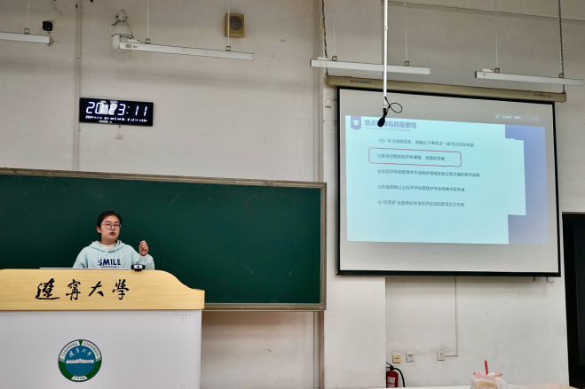 2022级李文婷同学通过列举一些参加过的学术会议,讲述自己从胆怯到逐渐自信的心路历程,分享自己在参加学术会议中的感悟和收获。在这些学术论坛中,她感受到专家学者的强烈科研热情,也学到很多经济学科的研究方法与科研思维,明确了今后的努力方向和如何走好科研道路。她还提供了一些平时获取科研资源的微信公众平台,鼓励同学们在日常学习中要积极寻找对自己有帮助的信息。