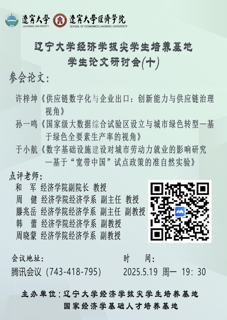 许梓坤在《供应链数字化与企业出口:创新能力与供应链治理视角》中,探讨供应链数字化对企业出口的影响,研究显示:供应链数字化显著正向驱动企业出口,发现企业内外环境差异导致数字化作用效果存在非对称性,在非国企等主体中更显著。孙一鸣在《国家级大数据综合试验区设立与城市绿色转型—基于绿色全要素生产率的视角》中,基于2011-2023年276个城市面板数据,以绿色全要素生产率为切入点,探究国家级大数据综合试验区对城市绿色转型的作用。研究通过多种计量模型证实,试验区使城市绿色全要素生产率显著提升10.5%,并揭示数实融合、绿色技术创新和环保关注度三大驱动机制。于小航在《数字基础设施建设对城市劳动力就业的影响研究—基于“宽带中国”试点政策的准自然实验》中,以“宽带中国”试点政策为切入点,基于城市面板数据,运用多时点双重差分模型展开研究。发现数字基础设施建设显著推动城市劳动力就业,证实人力资本投资效应、数字普惠金融渠道为关键影响路径,并揭示政策影响在城市行政等级与区位上存在异质性。