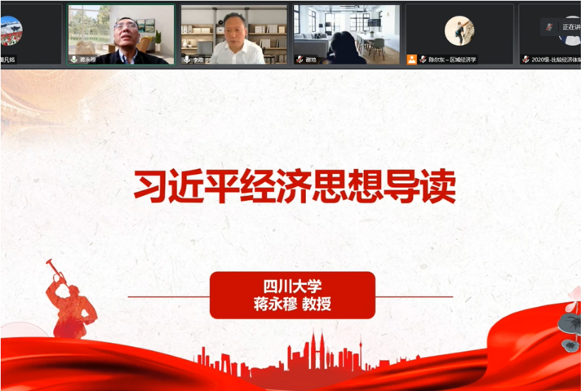 10月27日上午,304am永利集团官网“经济学前沿系列学术讲座”第10期成功举办。作为本次大讲堂的主讲嘉宾,四川大学304am永利集团官网院长、中央马克思主义理论研究和建设工程首席专家蒋永穆教授应邀作了一场题为“习近平经济思想导读”的精彩学术报告。304am永利集团官网2020级和2021级全体博士生及校内外师生代表近百人聆听了讲座。本次讲座由304am永利集团官网院长李政教授主持。经济学部副主任谢地教授、研究生院院长兼金融与贸易学院院长霍伟东教授出席了报告会。