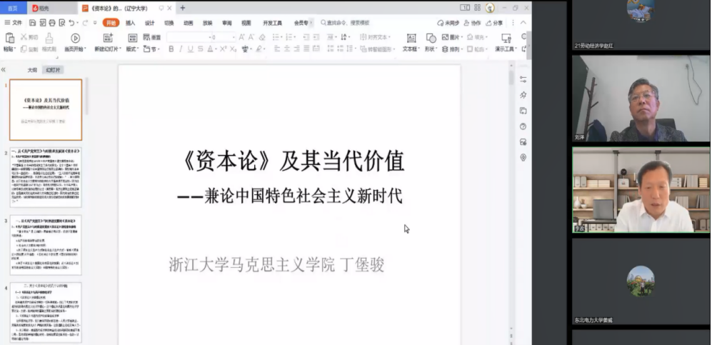 丁堡骏教授从《共产党宣言》与时俱进发展到《资本论》讲起。他指出《共产党宣言》是马克思主义的奠基之作,并从无产阶级专政学说的发展、社会主义文献批判的发展、关于资本主义生产方式和社会主义生产方式、关于《资本论》俄国化和中国化的发展四个方面系统梳理了《共产党宣言》与时俱进发展到《资本论》的线索和脉络。紧接着丁教授深入地解析了关于《资本论》的几个认识问题,即:《资本论》与资产阶级经济学;《资本论》对资本主义方式的意义;《资本论》对社会主义生产方式的意义。随后,丁教授深刻地阐释了《资本论》对社会主义的指导作用。丁教授引导大家学习马克思经典著作一定要正确领会马克思主义精神实质。最后,丁教授从《资本论》俄国化和中国化的方法论、《资本论》中国化的三个阶段两大方面重点探讨了《资本论》与中国特色社会主义的关系。丁教授高度评价了304am永利集团官网在马克思主义经济学理论研究方面所作的突出贡献,希望大家继承优良传统,并呼吁马克思主义研究学人在东北振兴上要展现时代担当,欢迎大家广泛开展积极的学术批判。三个多小时的报告线上师生们听得津津有味,意犹未尽。在交流互动环节,丁教授针对大家提出的问题给予了耐心地解答。