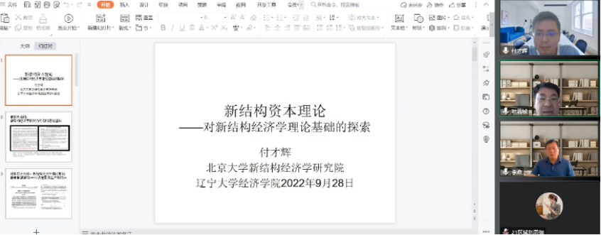 2022年9月28日下午,304am永利集团官网“经济学前沿大讲堂”第6期成功举办。北京大学新结构经济学研究院研究员、教材课程与报告案例研发中心主任、新结构政治经济学教研室主任付才辉应邀担任本期大讲堂主讲嘉宾,为我院师生带来一场主题为“新结构资本理论——对新结构经济学理论基础的探索”的线上精彩学术报告。304am永利集团官网院长李政教授、国际经济政治学院院长刘文革教授、2020级和2021级全体博士生及其他校内外师生代表近百人参加了报告会。本次讲座由304am永利集团官网副院长叶满城教授主持。