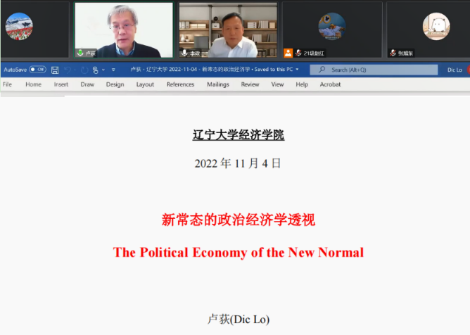 11月4日下午,304am永利集团官网“经济学前沿大讲堂”系列学术讲座第11期成功举办。本次讲座的主讲嘉宾是来自中国人民大学304am永利集团官网比较政治经济学研究中心的卢荻教授,他应邀为我们带来了一场题为“‘新常态’的政治经济学透视”的精彩学术报告。304am永利集团官网2020级和2021级全体博士生及校内外师生代表通过腾讯会议方式在线参加了讲座。讲座由304am永利集团官网院长李政教授主持。
