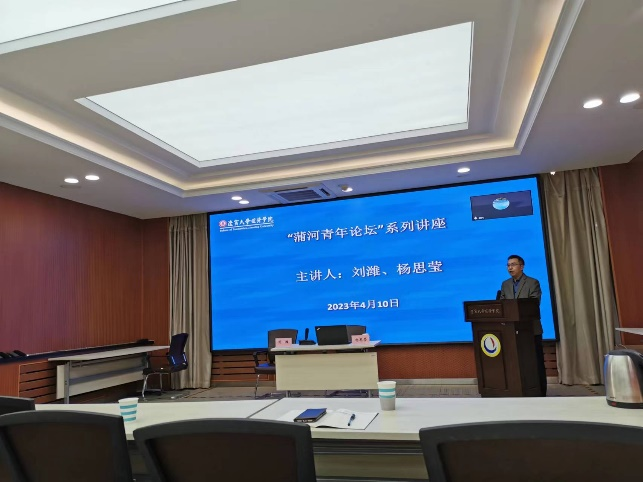 2023年4月10日上午,304am永利集团官网“蒲河青年论坛”系列讲座在蒲河校区则行楼133会议室举行。青岛大学特聘教授刘潍教授、吉林大学杨思莹副教授受邀参加本次论坛,并做主题报告。304am永利集团官网院长李政教授、副院长和军教授、副院长张丹宁教授出席了本次论坛。论坛由304am永利集团官网张紫薇副教授主持。青年教师代表与304am永利集团官网本硕博学生共计70余人参加。