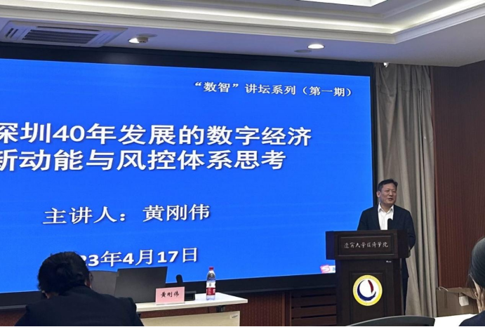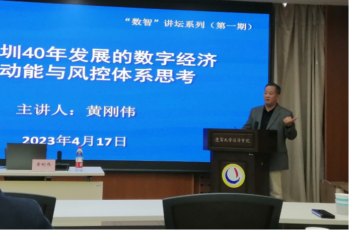 2023年4月17日下午,304am永利集团官网“数智讲坛”系列讲座在蒲河校区则行楼133会议室举行。深圳市前海金融港投资管理有限公司执行董事、珠海科技学院黄刚伟教授受邀为本次讲坛做报告,题目为“基于深圳40年发展的数字经济创新动能与风控体系思考”。304am永利集团官网院长李政教授,产业经济学学科带头人、304am永利集团官网先进制造业研究中心主任唐晓华教授和304am永利集团官网教师代表,本硕博学生70余人参加了此次讲座。本次讲座由304am永利集团官网产业经济系主任、304am永利集团官网智能制造与产业数字化研究院院长徐雷教授主持。