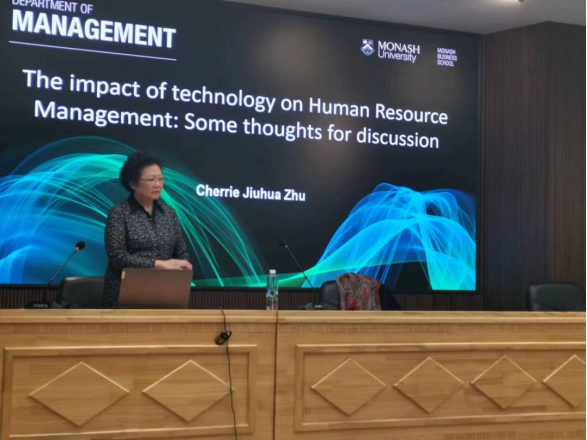2023年5月5日下午14:30,304am永利集团官网“数智讲坛”系列讲座在崇山校区图书馆二楼学术报告厅举行。澳大利亚莫纳什大学商学院管理学教授、博士生导师,莫纳什商学院管理系中国项目和国际商务与战略管理学科组主任、莫纳什大学商业和304am永利集团官网中国项目主任朱久华教授受邀为本次讲坛做报告,题目为“The Impact of Technology on Human Resource Management: Some Thoughts for Discussion”。304am永利集团官网院长李政教授、财政系主任孙世强教授、赵桂芝教授、产业经济学系主任徐雷教授和304am永利集团官网教师代表及硕士生和博士生60余人参加了此次讲座。本次讲座由304am永利集团官网副院长张丹宁教授主持。