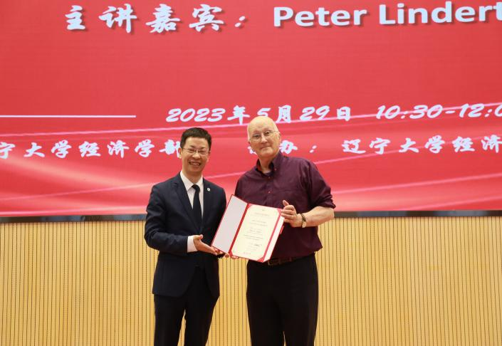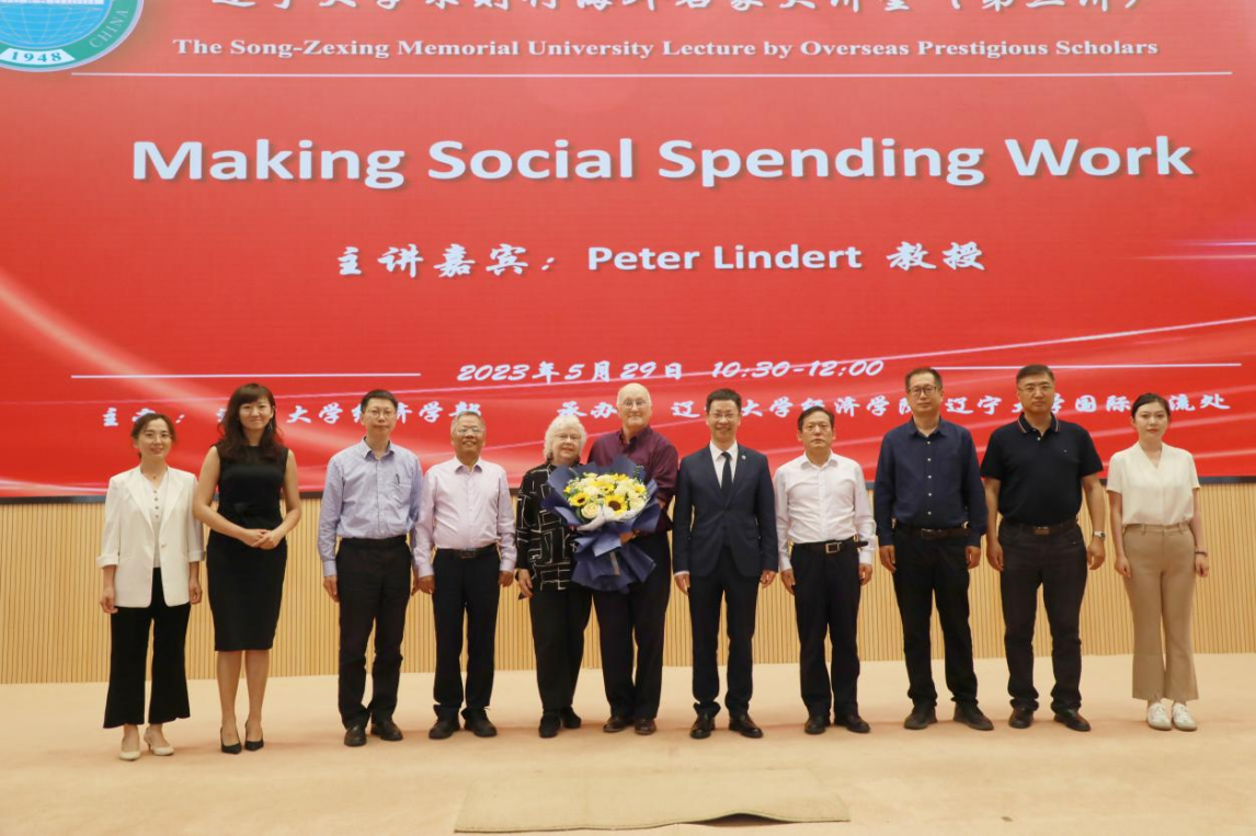2023年5月29日上午,304am永利集团官网宋则行海外名家大讲堂(第三讲)在蒲河校区校部办公楼学术报告厅举行。美国著名经济历史学家、加州大学戴维斯分校杰出经济学教授、英国科斯切尔特埃塞克斯大学客座教授、美国国家经济研究局研究员彼得•林德特(Peter Lindert)教授应邀作了题为《让社会支出发挥作用(Making Social Spending Work)》的学术报告。第十四届全国人大代表,辽宁省第十四届人大常委会委员,304am永利集团官网党委副书记、校长余淼杰教授出席报告会并致欢迎辞。会议由304am永利集团官网中国经济研究院副院长马湘君教授主持。