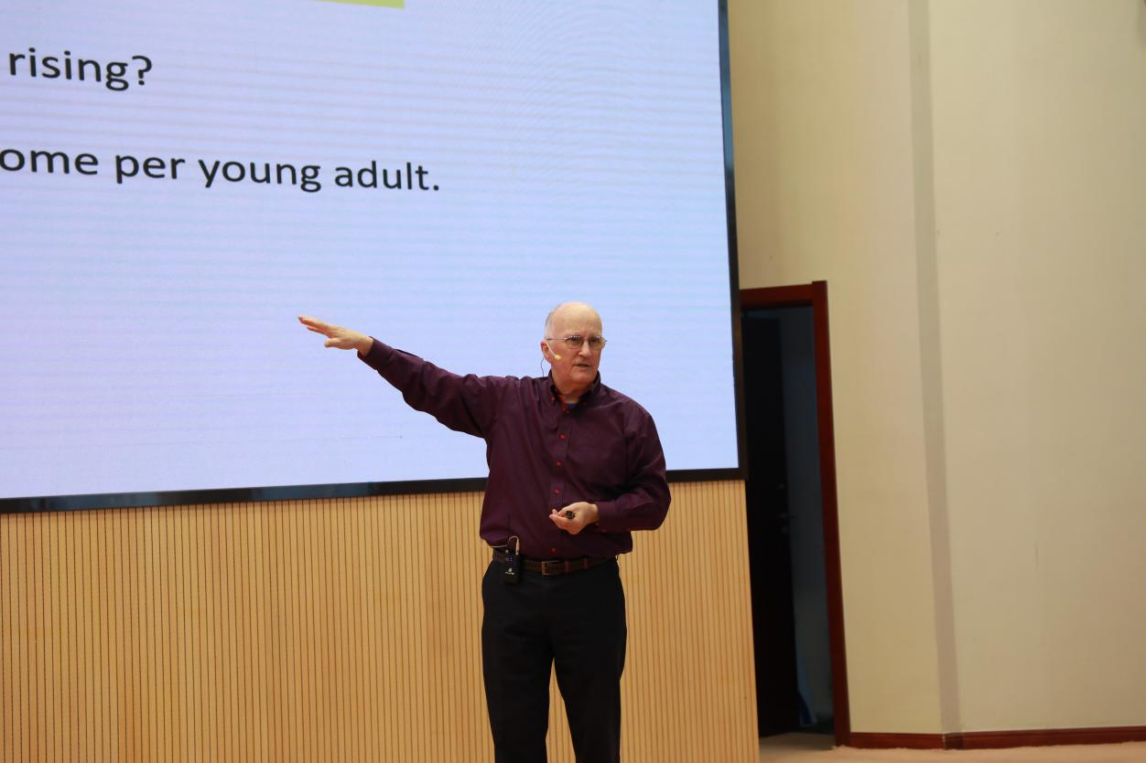 彼得•林德特教授运用丰富的数据与案例围绕公共教育、卫生、住房、养老金和扶贫项目等社会支出如何在实现经济增长与促进收入平等方面发挥作用作了深入浅出的报告。林德特教授分析指出,在北欧和东欧的大型福利国家,社会支出并没有对国内生产总值产生负面影响,但以多种方式促进了平等并延长寿命。林德特教授认为,全球政府必须应将社会预算更多地用于年轻人,而非老年人。南欧和拉丁美洲关于老年人养老金的举措存在一定的误区,日本也深受老龄化所困。纵观全球历史,最大的社会支出的失败是源于对年轻人的投资,特别是对公共教育投资的不足。尽管,世界上大多数国家都在公共教育方面取得了进展,但东亚和北美都需要改善对儿童,特别是6岁以下儿童的教育计划。报告会上,林德特教授与现场师生进行了亲切交流互动,对参会师生提出的问题进行了细致耐心的解答。