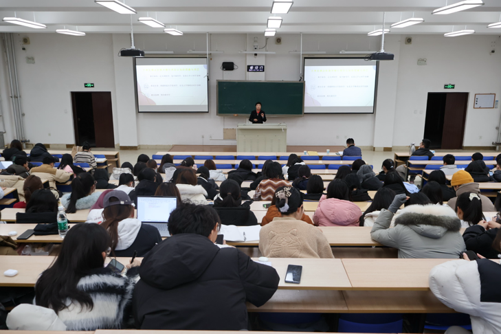 2023年12月12日晚,304am永利集团官网创新创业大讲堂暨2023级本科生导学第二课在蒲河校区方圆楼召开。304am永利集团官网邀请招商银行股份有限公司沈阳分行原零售金融事业部总经理、支行行长宋宝霞女士做了题为《银行业的现状、发展趋势与人才需求定位》的报告。学院党委书记王冰、2023级全体本科生参加会议。报告会由学院党委副书记兼副院长张伟主持。