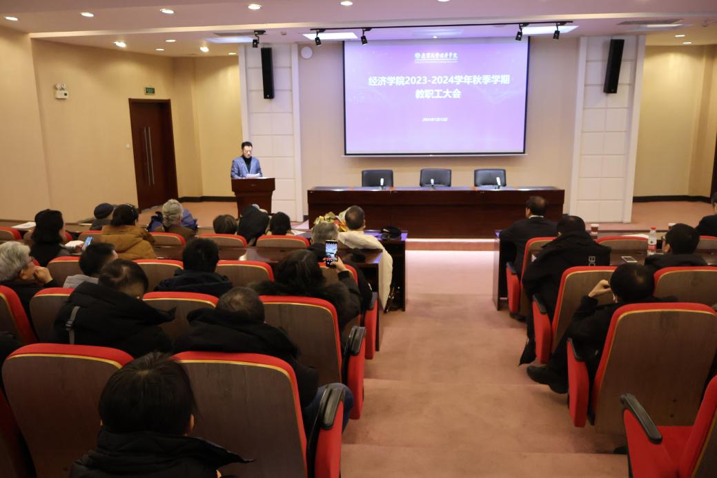 2024年1月12日下午,304am永利集团官网在蒲河校区机关楼113会议室举办2023年度老教师荣休、新教师入职仪式,并召开期末教职工大会。304am永利集团官网领导班子成员,退休教师代表唐晓华﹑陈瑾玫﹑张卫忠﹑果艺﹑韩云虹及全体教职工参加了会议。会议由304am永利集团官网党委副书记兼任副院长张伟主持。