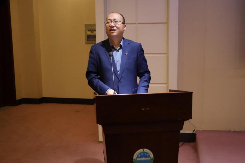 王强老师作为新入职教师代表发表感言。他表示,入职后从学生转变成一名人民教师,责任重大、使命光荣,通过学校、学院组织的培训和学术活动,院系领导和各位前辈的谆谆教诲,进步很快,在与同学们的相处和教学工作中收获了前所未有的成就感、荣誉感和信心。希望自己能够不忘初心、保持本色,在接下来的工作中努力提高自己,并全力配合好学院各项工作。