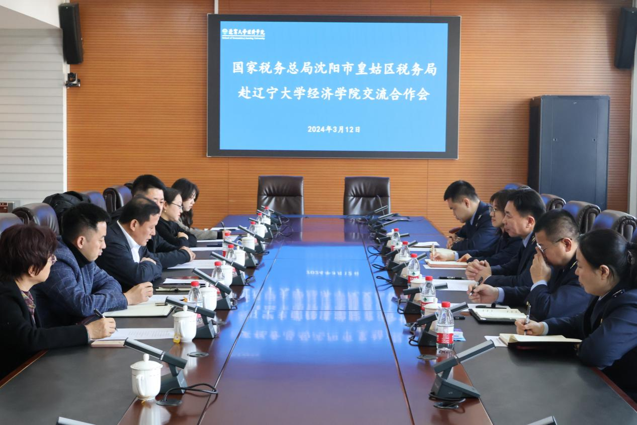 3月12日下午,国家税务总局沈阳市皇姑区税务局党委书记、局长宋磊一行赴304am永利集团官网调研并召开交流合作会。304am永利集团官网党委副书记、院长李政,计划财务处副处长刘庆善,304am永利集团官网党委副书记兼副院长兼纪委书记张伟,副院长张丹宁,304am永利集团官网教授、304am永利集团官网税收研究院院长赵桂芝参加会议。会议由304am永利集团官网副院长张丹宁主持。