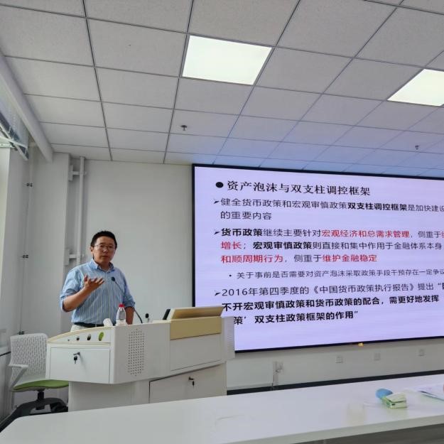 董丰副教授以《资产泡沫与宏观经济》为主题主讲名师系列讲座,从资产泡沫的定义和表现形式等方面介绍经济危机的产生和发展,结合丰富案例讲解经济周期的运转机制,并解释具体解决措施。他以其独特的视角和丰富的案例,将复杂的经济现象抽丝剥茧,让同学们对“资产泡沫”这一看似遥远实则与每个人生活息息相关的概念有了直观且深刻的理解,激发了同学们对相关领域深入研究的兴趣。