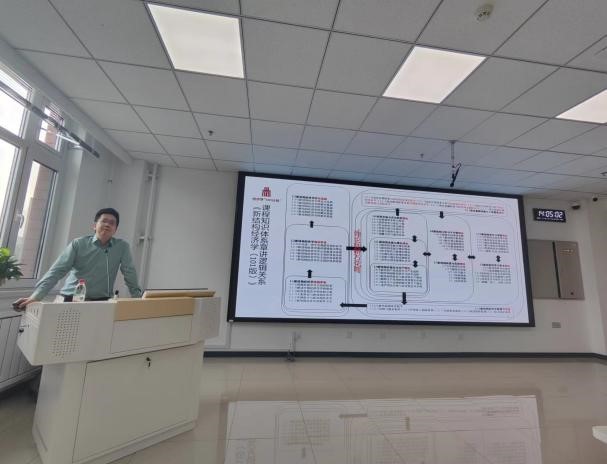 付才辉研究员以《101计划新结构经济学课程引介》为题主讲学术前沿课程,介绍教育部的经济学101计划源起与目标,进而引入经济学101计划的核心基础课程——《新结构经济学》。在其课程中介绍了经济学101计划核心基础课程的五大理念、首要任务和四大核心任务,并指出“课程的内容是介绍以马克思主义中国化、时代化、学理化为指导,运用现代经济学方法,总结中国与发展中国家经济发展、经济转型与经济运行经验一般规律的新结构经济学基本概念、基本原理与研究基础”,最后介绍了新结构经济学课程知识体系章节之间的逻辑关系,使同学们对该项目有了更为深入的了解,激发了同学们对于新结构经济学乃至构建中国特色社会主义经济学体系的兴趣。