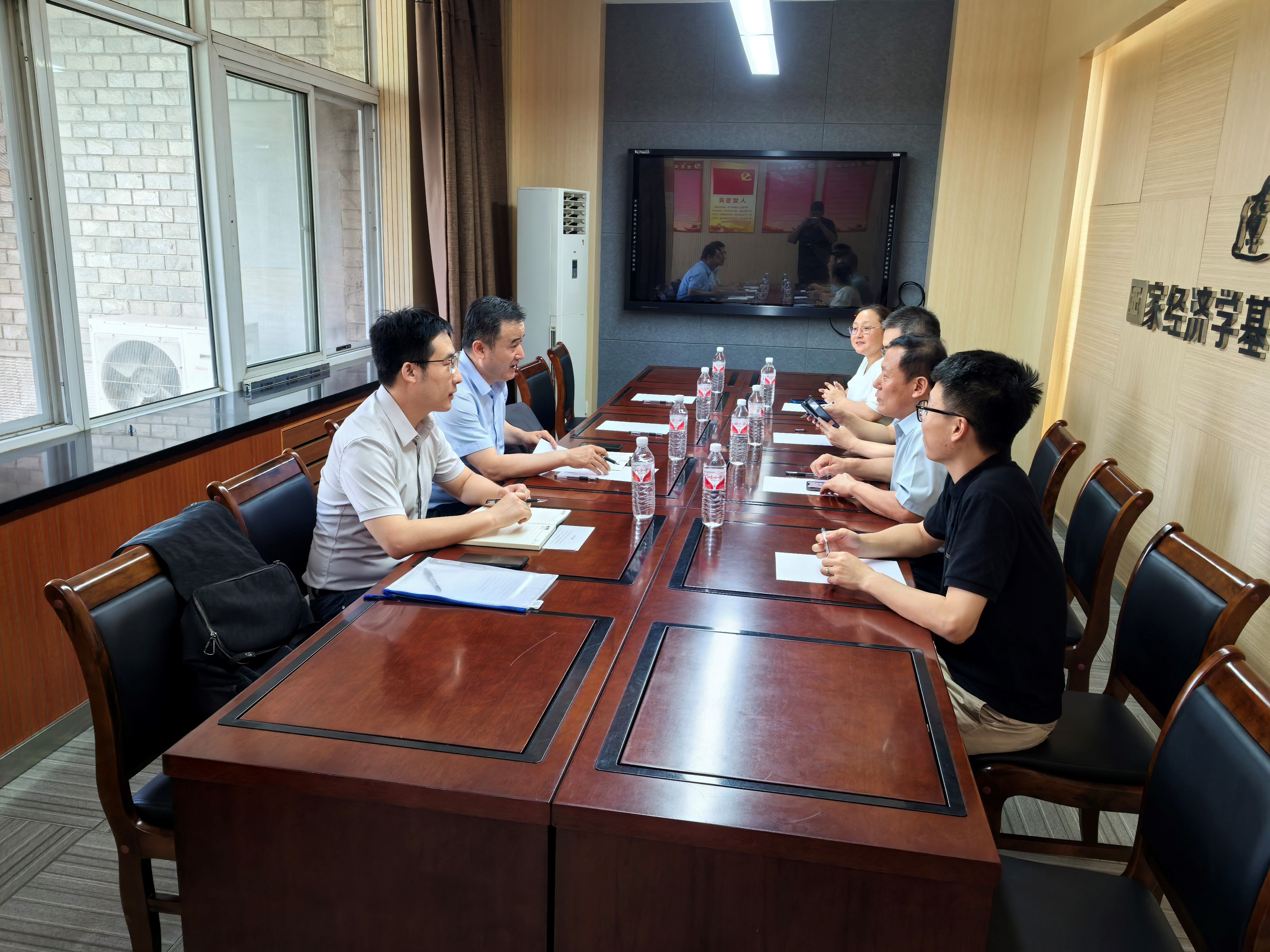 7月23日上午,鞍钢集团有限公司经济发展研究院副院长贾凤泳、专家委员会办公室杨桐研究员一行赴304am永利集团官网开展调研并洽谈合作事宜。304am永利集团官网院长李政、副院长和军、副院长张丹宁、智库建设办公室赵哲老师参加座谈。