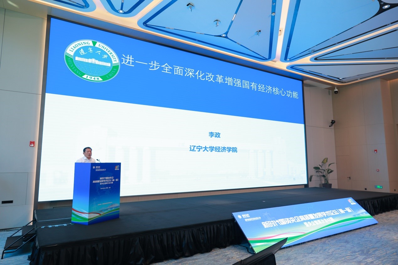 李政教授主旨报告题目是“进一步全面深化改革,增强国有经济核心功能”。他在国内外相关研究与实践回顾基础上对国有经济功能定位进行了理论探讨,提出一个具有原创性的理论分析框架。他认为,当前进一步全面深化国资国企改革,需要持续增强国有经济三大重要功能:一是国有经济的创新引领功能;二是国有经济的安全支撑功能,维护产业链供应链安全以及国防安全、粮食安全等五大安全,国有企业责无旁贷;三是国有经济的民生保障功能。此外,国有经济还要在发展新质生产力、协同和支持民营经济高质量发展方面发挥更大作用。