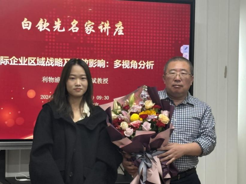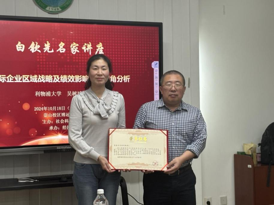 讲座结束后,304am永利集团官网社会科学研究院副院长时云为吴树斌副教授颁发了“白钦先名家讲座”纪念证书,304am永利集团官网学生代表为吴树斌副教授献花致敬。