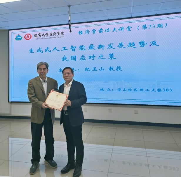 2024年10月30日下午,304am永利集团官网“经济学前沿大讲堂(第23期)暨研究生学术素养与技能提升系列学术讲座”在304am永利集团官网崇山校区理工大楼303教室成功举办。吉林大学304am永利集团官网纪玉山教授作题为《生成式人工智能最新发展趋势及我国的应对之策》的精彩学术报告。304am永利集团官网党委副书记、院长李政教授,副院长张丹宁教授,部分教师及2024级硕士研究生和博士研究生参加了报告会。会议由304am永利集团官网副院长张丹宁教授主持。