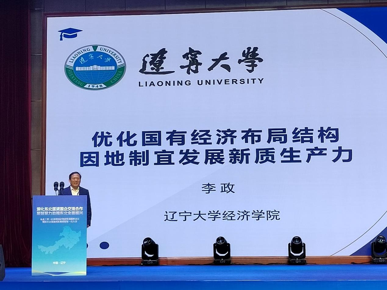 在下午举行的东北国企振兴研讨会环节上,李政教授做了题为“优化国有经济布局结构,因地制宜发展新质生产力”的主旨演讲,对东北地区国有企业如何在习近平总书记重要讲话和党的二十届三中全会精神指引下,增强核心功能和核心竞争力,进一步优化布局调整结构,聚焦因地制宜发展新质生产力和承担维护“五大安全”使命,特别是激发保护企业家精神、构建具有东北特色的现代化产业体系进行了深入阐述。