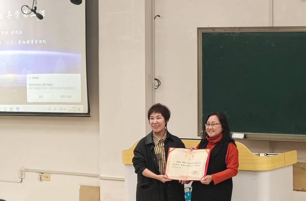 课程开始前,304am永利集团官网副院长张丹宁代表学院向周琳副处长颁发了304am永利集团官网行业导师的聘书。
