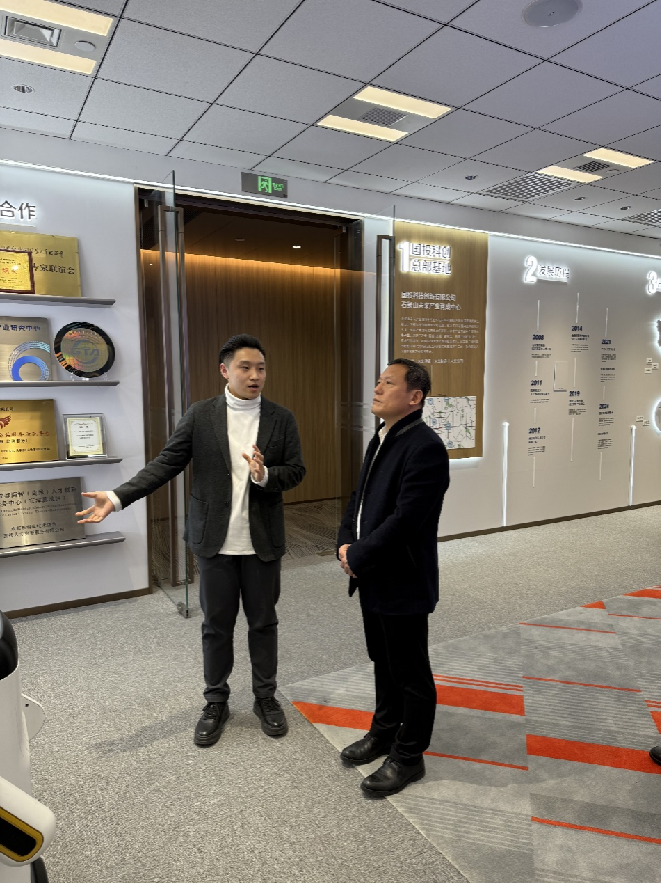 座谈开始前,李政院长在陈超副总经理陪同下参观了国投科技创新有限公司石景山未来产业育成中心。