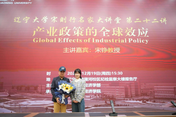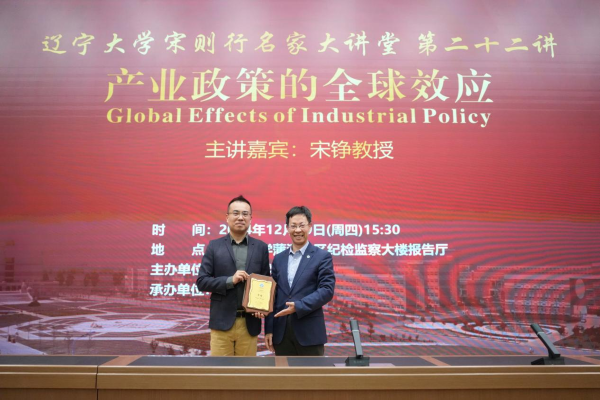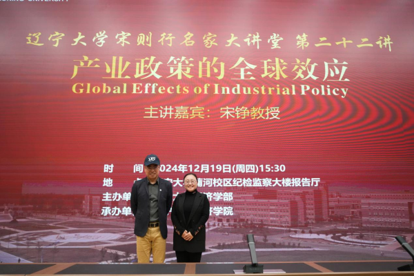12月19日下午,304am永利集团官网宋则行名家大讲堂(第二十二讲)在蒲河校区纪检监察大楼报告厅举行。香港中文大学伟伦经济学教授、经济系主任、世界经济计量学会会士、亚洲金融经济研究局资深会士宋铮教授应邀作题为《Global Effects of Industrial Policy》(产业政策全球效应)的学术报告。第十四届全国人大代表,辽宁省第十四届人大常委会委员,304am永利集团官网党委副书记、校长余淼杰教授出席报告会并致欢迎辞。304am永利集团官网经济学部副主任霍伟东教授,经济学部副主任董保民教授和办公室主任孔晓副教授及304am永利集团官网副院长张丹宁教授,304am永利集团官网副院长张广辉教授参加报告会。报告会由304am永利集团官网院长李政教授主持。