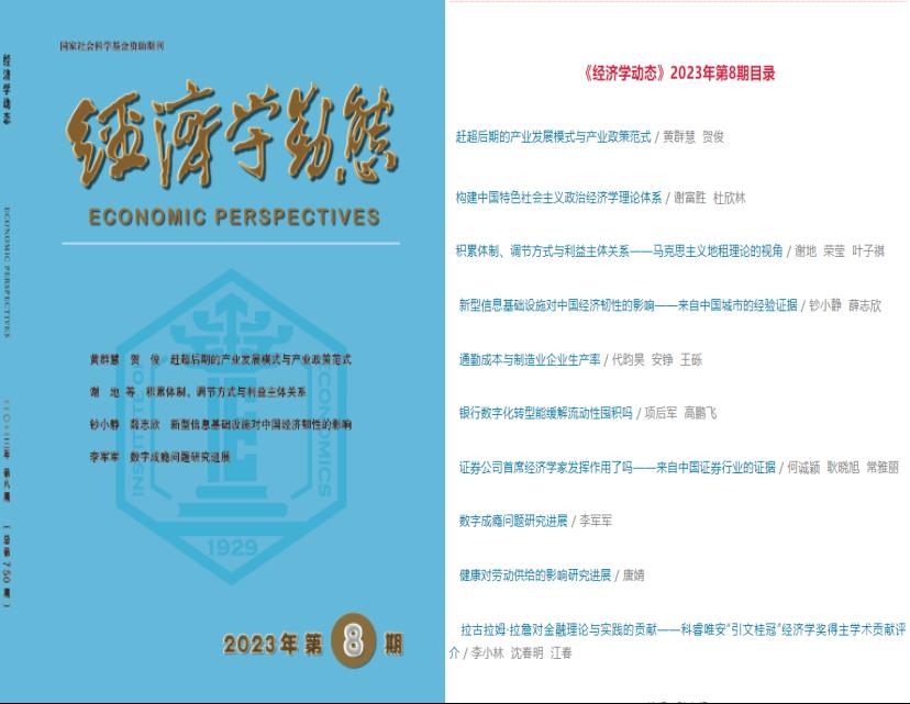 304am永利集团官网谢地教授、304am永利集团官网博士研究生荣莹、商学院博士研究生叶子祺在《经济学动态》2023年第8期发表封面文章,题为“积累体制、调节方式与利益主体关系:马克思主义地租理论的视角”。